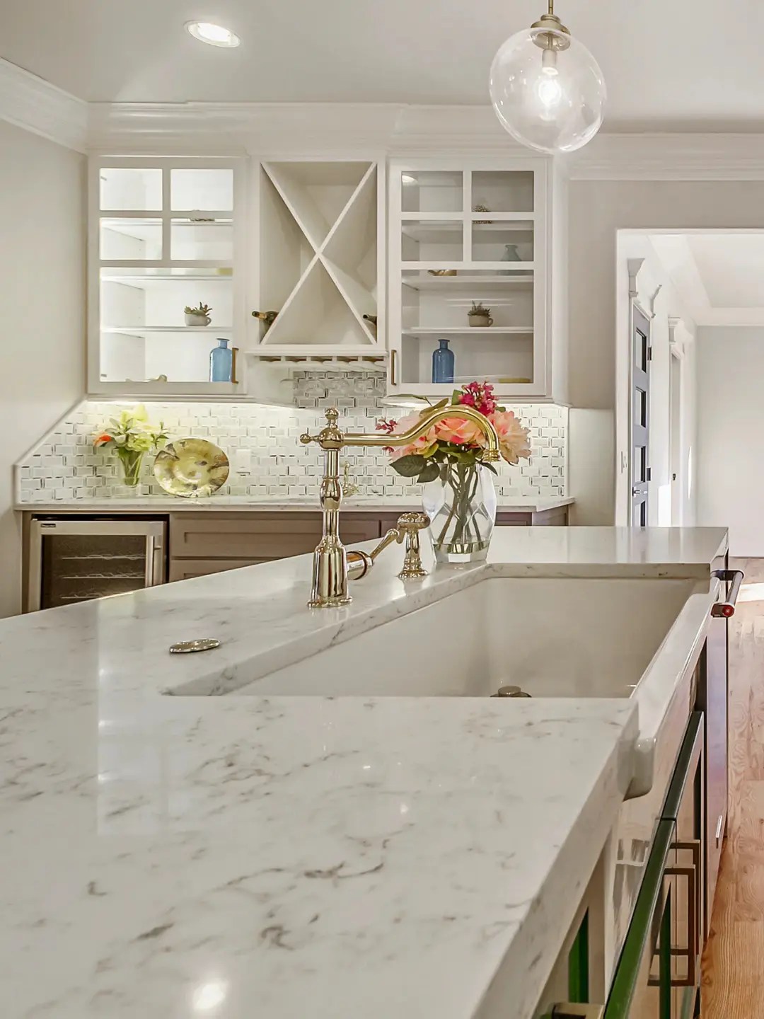 Granite is heat- and scratch-resistant, while quartz offers more uniform patterns and is easier to maintain. Both are strong options.